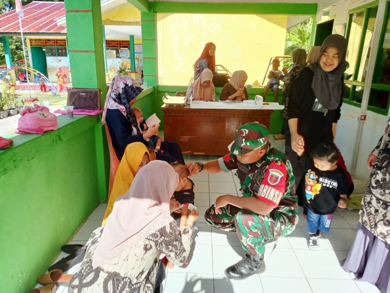 Babinsa Kodim Bone Koramil 1407-18/Kajuara Dampingi Kegiatan Posyandu Balita Dan Ibu Hamil Di Desa Pude