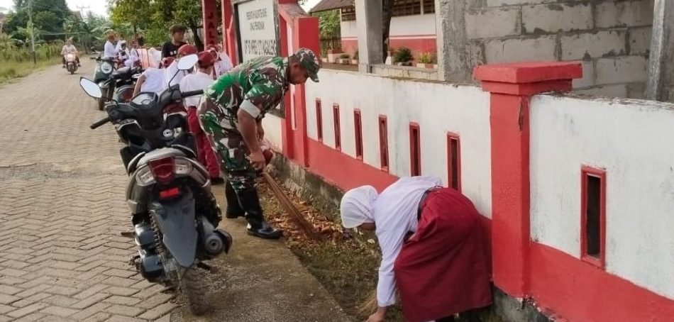 Tingkatkan Kebersihan Lingkungan, Anggota Koramil 21/Palakka Laksanakan Kerja Bakti Bersama Masyarakat