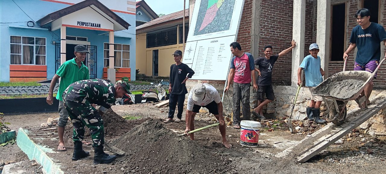 BONE – Babinsa Koramil 1407-08/Lamuru Serda Ismail turut serta melaksanakan gotong royong pengecoran lantai Kantor Desa Mattampawalie, Kec. Lamuru, Kab. Bone. Selasa (10/02/26).