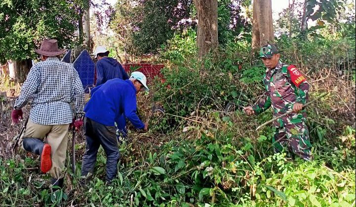 Babinsa Koramil 09/Lapri Gotong Royong Bersama Warga Bersihkan TPU Di Desa Binaan