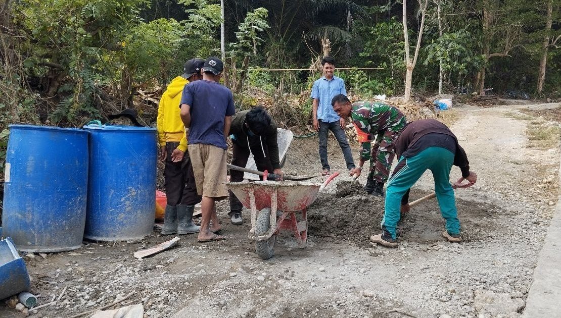 Dalam pelaksanaannya, warga tampak antusias bekerja sama dengan penuh semangat gotong royong, mulai dari meratakan jalan hingga memperkuat bagian yang rusak.