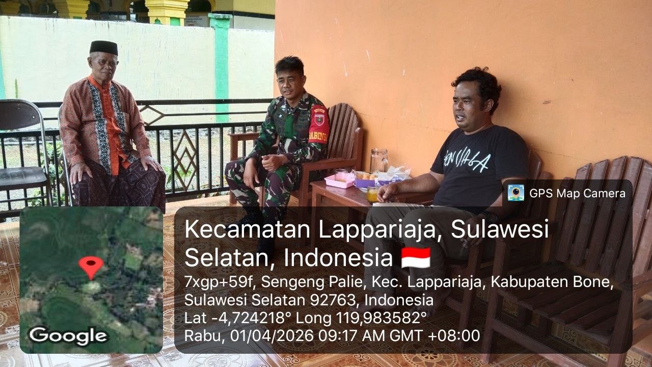 BONE – Babinsa Koramil 1407-09/Lapri Sertu Listan melaksanakan komunikasi sosial (komsos) bersama warga di Desa Sengeng Palie, Kecamatan Lapri, Kabupaten Bone, Rabu Siang (01/04/26).