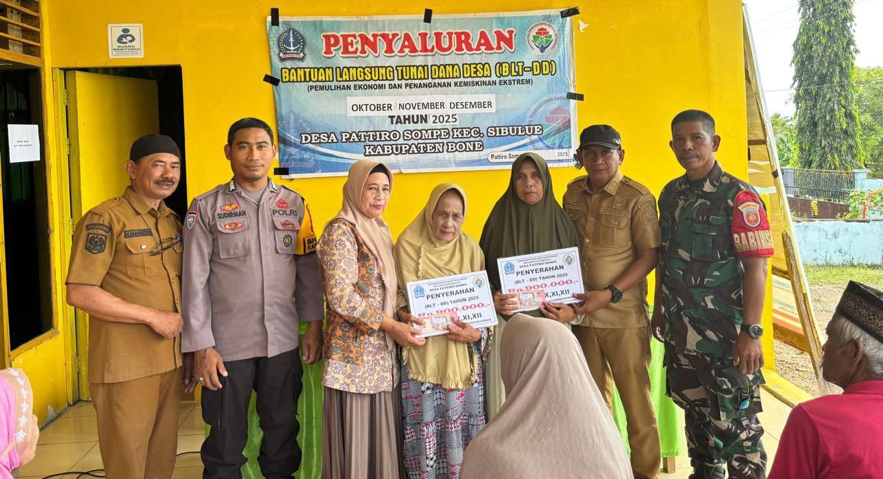 BONE – Serma Andi Rustang Babinsa Koramil 1407-13/Sibulue dampingi penyaluran Bantuan Langsung Tunai Dana Desa (BLT DD) 2025 kepada warga penerima bantuan kategori Ekstrim Miskin di Desa Pattiro Sompe, Kec. Sibulue, Kab. Bone. Kamis (20/11/25).