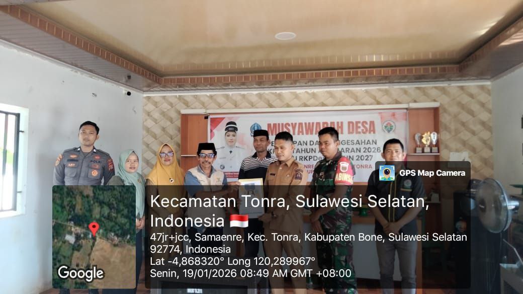 Bone – Babinsa Koramil 1407-16/Tonra Sertu Fadly Nur menghadiri kegiatan Musyawarah Desa (Musdes) dalam rangka penetapan dan pengesahan Rencana Kerja Pemerintah Desa (RKPDes) Tahun Anggaran 2026 serta penyusunan RKPDes Tahun 2027.