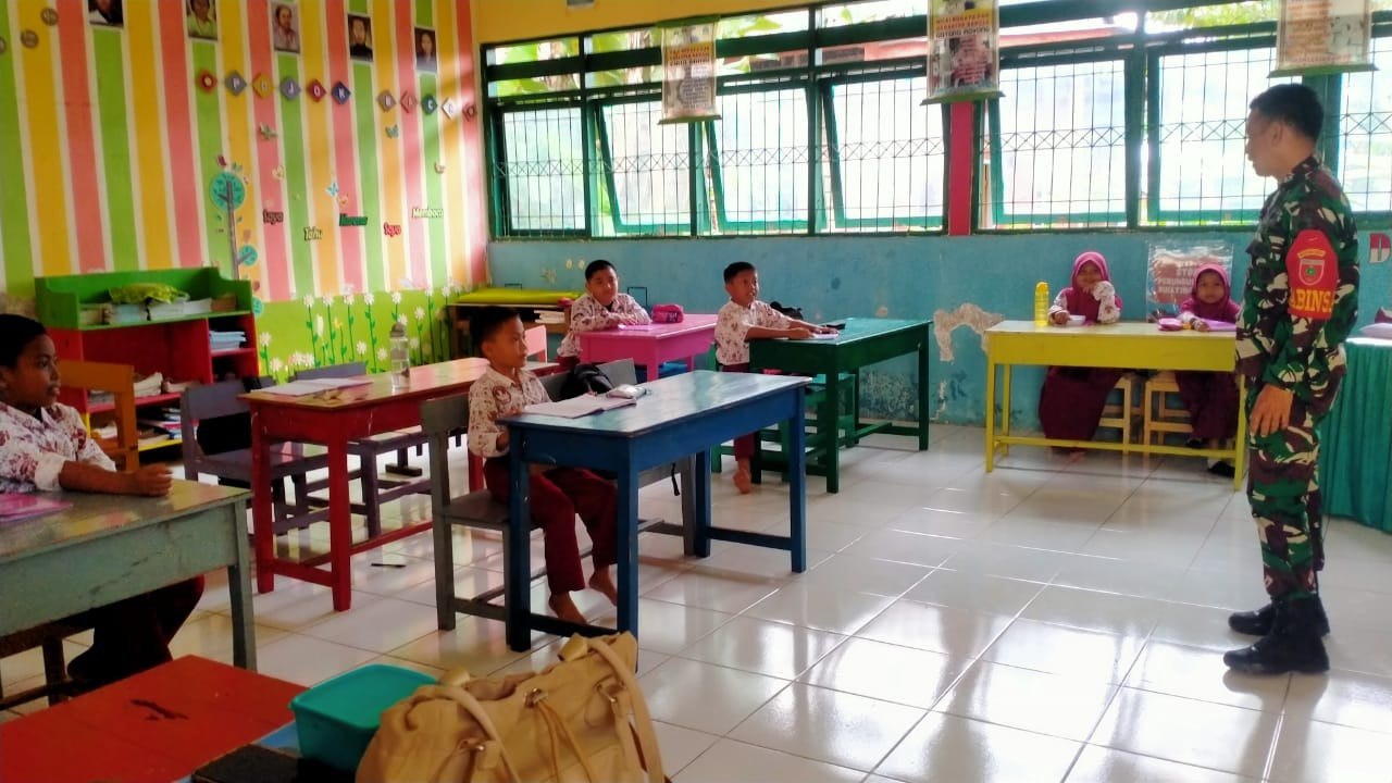 BONE – Babinsa Koramil 1407-21/Palakka Sertu Ikmal melaksanakan Pembinaan Wawasan Kebangsaan (Binwanwil) kepada para siswa SD Inpres 12/79 Desa Cinennung, Kec. Palakka, Kab. Bone. Rabu (14/01/26).