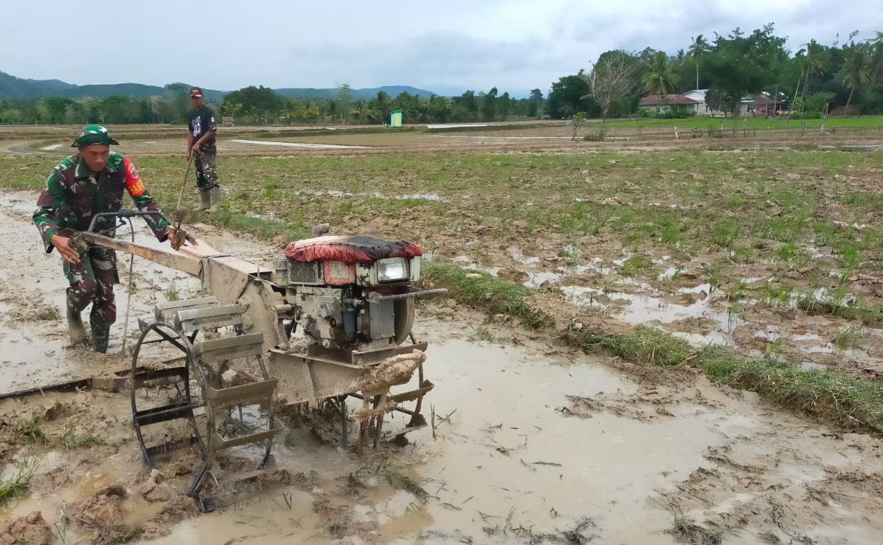 “Sebagai Babinsa, kami berupaya selalu hadir di tengah-tengah masyarakat. Membantu petani membajak sawah seperti ini adalah wujud nyata dukungan TNI terhadap ketahanan pangan serta bentuk kemanunggalan TNI dengan rakyat,” ujar Serda Syukur.