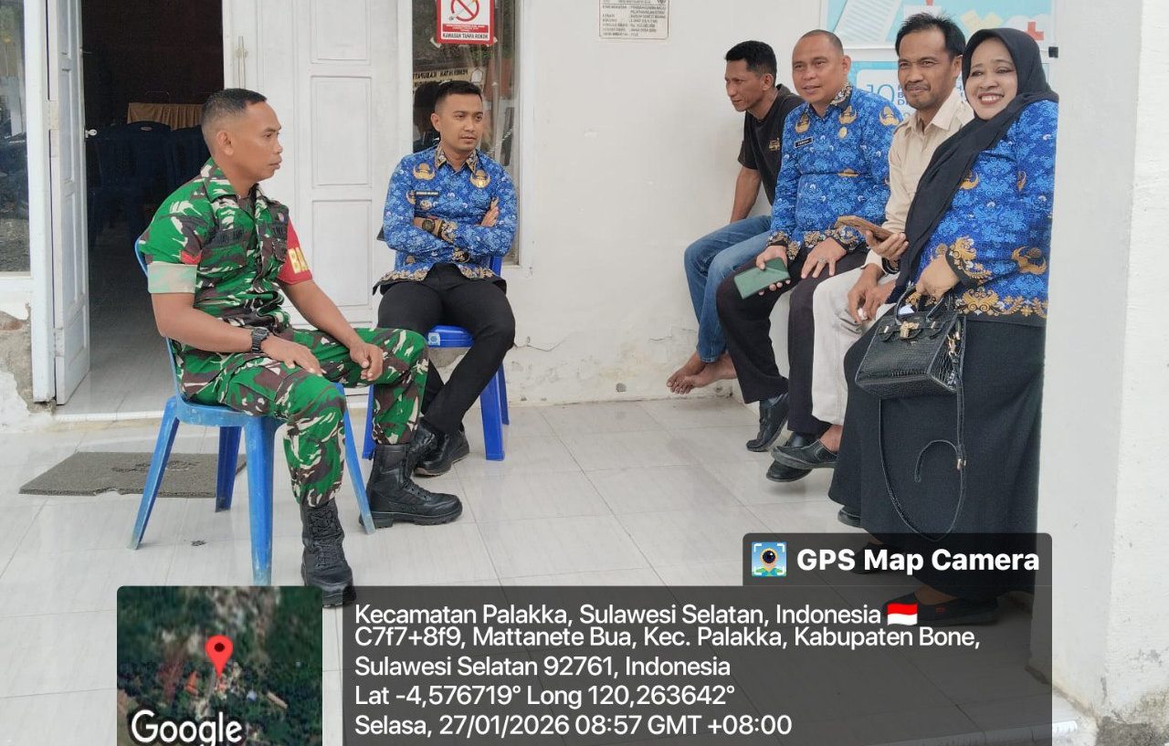 BONE – Babinsa Koramil 1407-21/Palakka Koptu Ahmad Amir, melaksanakan kegiatan Komunikasi Sosial (Komsos) bersama aparat pemerintah desa bertempat di Kantor Desa Mattanete Bua, Kecamatan Palakka, Kabupaten Bone. Selasa Siang (27/01/26).