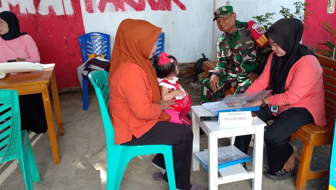Sertu Suparmin mendampingi petugas kesehatan dalam memberikan layanan kepada warga, seperti pemeriksaan kesehatan, imunisasi, serta pemberian vitamin dan gizi tambahan untuk anak-anak dan ibu hamil.