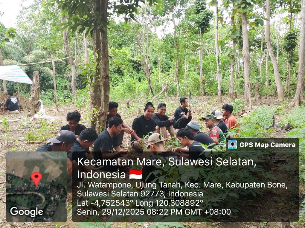 BONE – Sertu Yusuf Ahmad Babinsa Koramil 1407-15/Mare melaksanakan komunikasi sosial (Komsos) dengan anak-anak muda di Desa Ujung Tanah, Kecamatan Mare, Kabupaten Bone. Senin (29/12/25).
