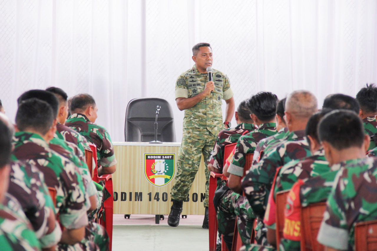 BONE – Menjelang malam pergantian tahun 2025 menuju 2026, Komandan Kodim 1407/Bone, Letkol Inf. Laode Muhammad Idrus, menegaskan kesiapsiagaan penuh seluruh prajurit Kodim 1407/Bone. Dandim memerintahkan Babinsa di seluruh wilayah untuk meningkatkan monitoring hingga malam pergantian tahun, sebagai langkah deteksi dini dan cegah dini terhadap potensi gangguan keamanan.
