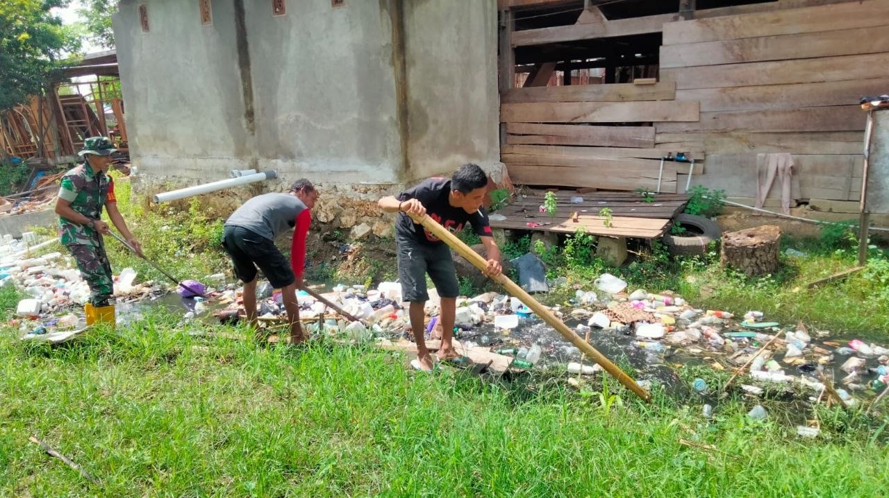 Dalam pelaksanaannya, Serda Erwin bersama warga tampak antusias membersihkan parit dari sampah dan lumpur yang menyumbat aliran air, sehingga saluran dapat berfungsi dengan baik.