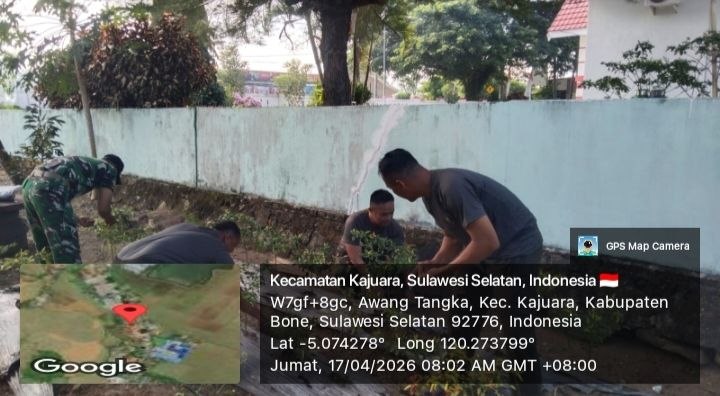 BONE – Anggota Koramil 1407-18 Kajuara melaksanakan kegiatan pembinaan pangkalan di sekitar kantor Koramil yang terletak di Kelurahan Awang Tangka, Kecamatan Kajuara, Kabupaten Bone. Jumat Siang (17/04/26)