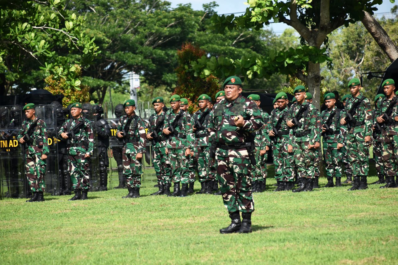 “Apel gelar pasukan dilaksanakan bertujuan untuk mengetahui secara langsung baik kesiapan personel maupun alat perlengkapan yang akan digunakan dalam mendukung pengamanan Pemilu”. ucap Danrem 174/ATW.