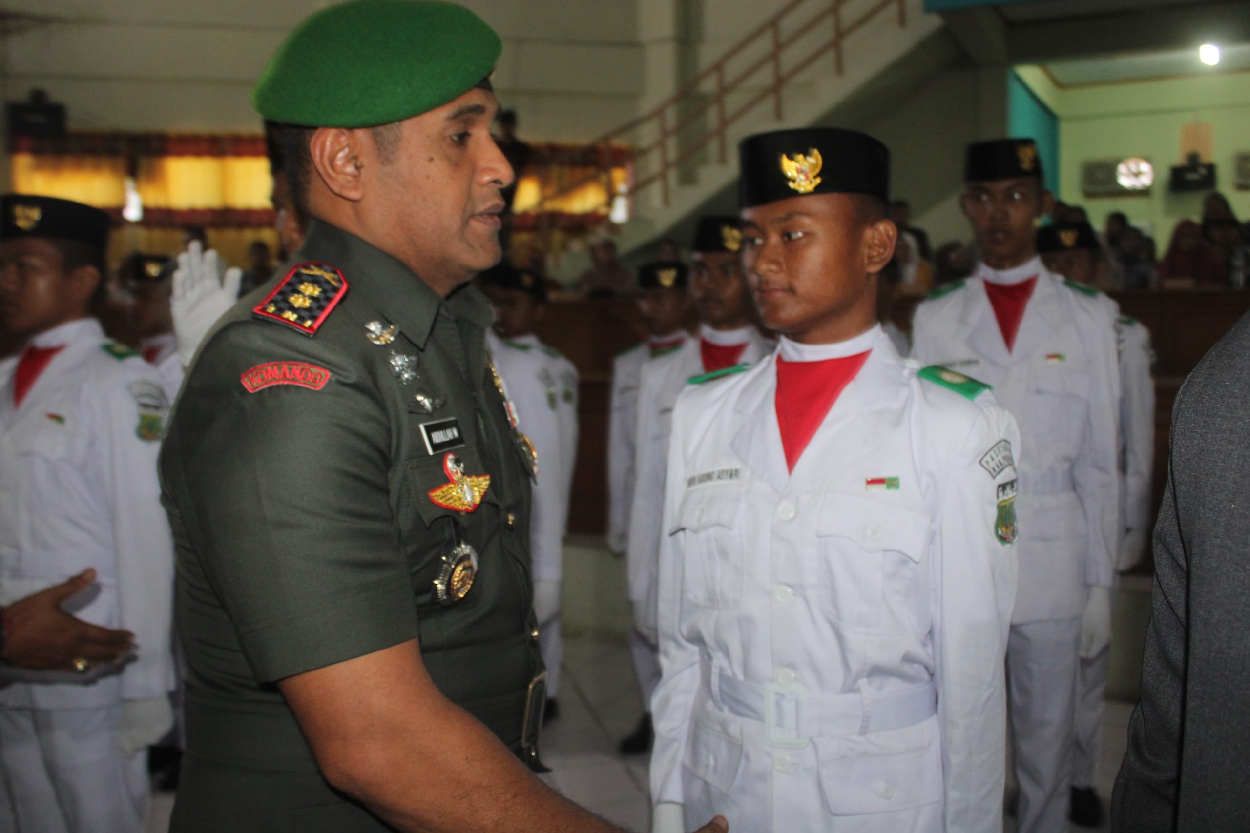 Pinrang_ Dandim 1404/Pinrang Letkol Inf Abdullah Mahua, SHI., M.M., menghadiri acara pengukuhan Pasukan Pengibar Bendera Pusaka (Paskibraka) tingkat Kabupaten Pinrang tahun 2024 di Aula Kantor Bupati Pinrang, Kamis (15/08/2024).
