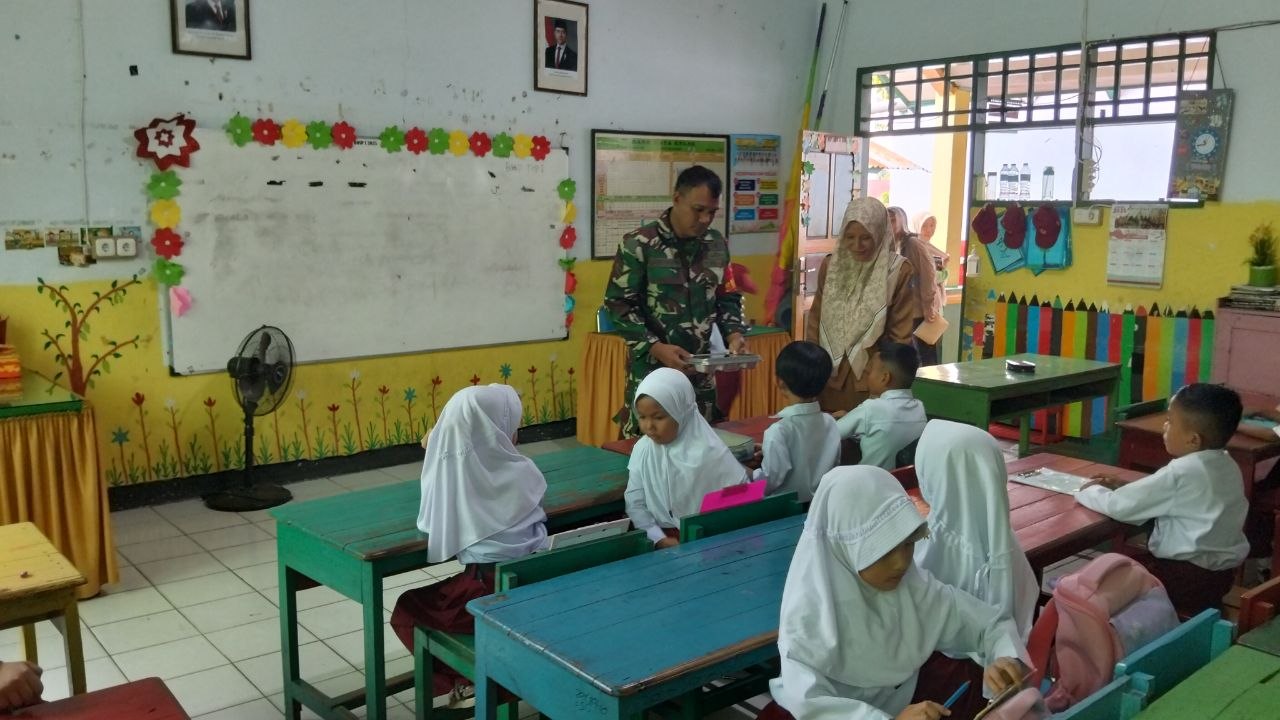 Dalam pelaksanaannya, Babinsa turut memastikan kegiatan berjalan dengan tertib, aman, dan lancar hingga seluruh siswa menerima makanan yang telah disiapkan.