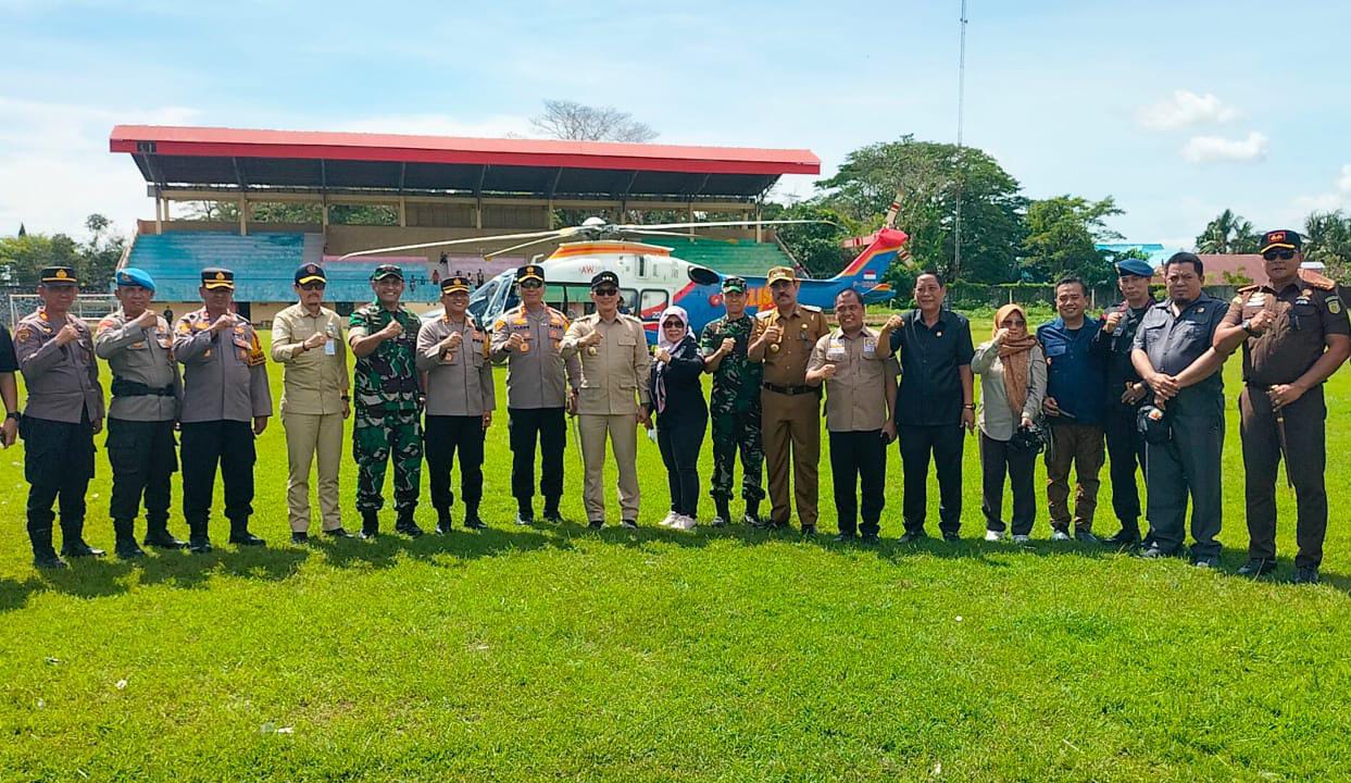 Pinrang_ Dandim 1404/Pinrang Letkol Inf Abdullah Mahua, SHI., M.M., beserta Forkopimda Kabupaten Pinrang menyambut kunjungan kerja Forkopimda Provinsi Sulawesi Selatan dalam rangka monitoring kesiapan pelaksanaan pungut suara OMP Pallawa 2024 di wilayah Kabupaten Pinrang, Selasa (26/11/2024).