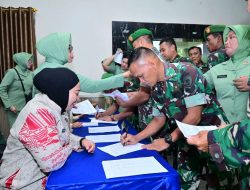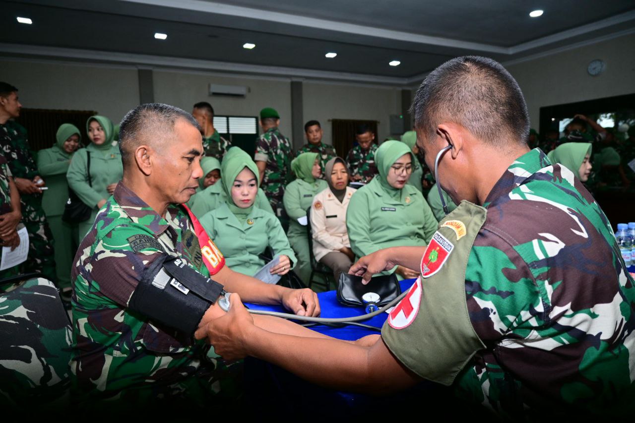 BONE – Sambut HUT Persit ke 80, Dandim 1407/Bone Letkol Inf. Laode Muhammad Idrus didampingi Ketua Persit Kartika Chandra Kirana Cab. XXV Ny. Nur Fitrianti Laode ikuti bakti sosial donor darah yang digelar di aula Makorem 141/Toddopuli, Jl. Jend. Sudirman, Kab. Bone. Senin (02/02/26).