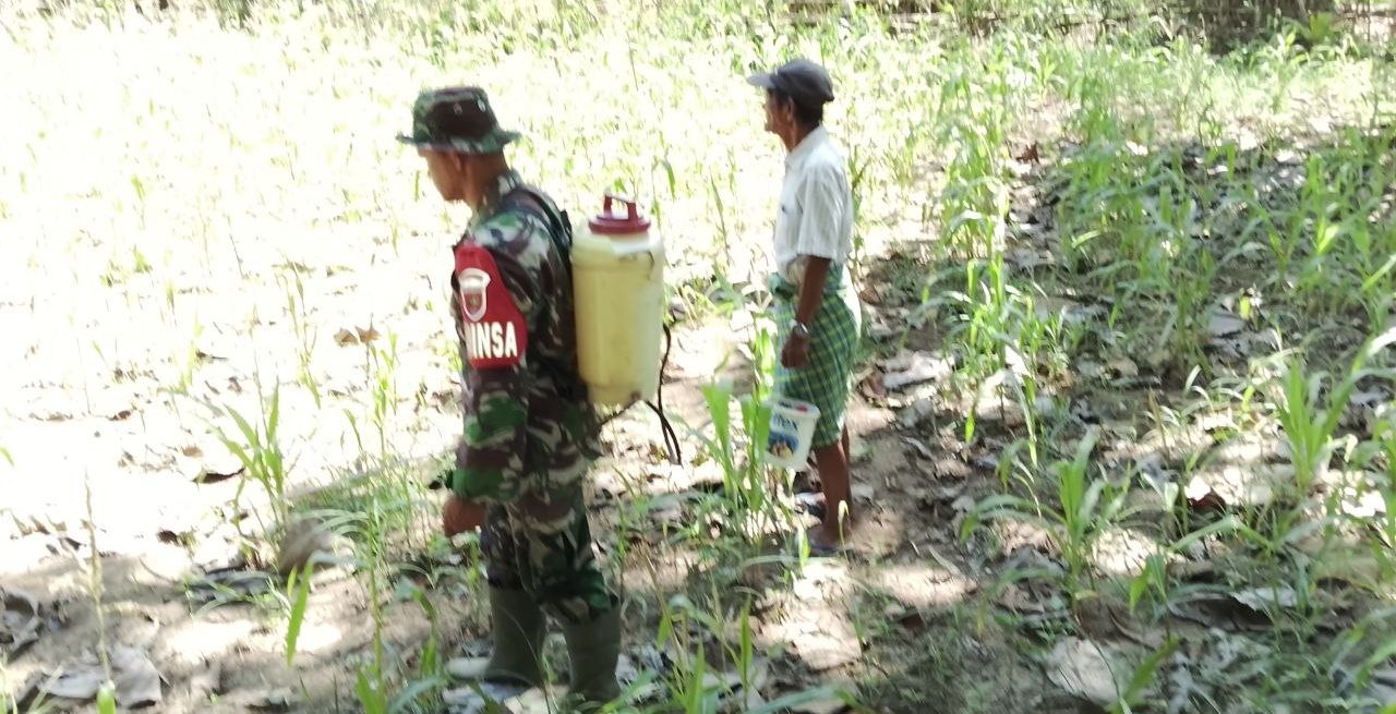 Genjot Produktivitas Jagung, Babinsa Koramil 15/Mare Kodim Bone Turun Tangan Basmi Hama Di Ujung Tanah
