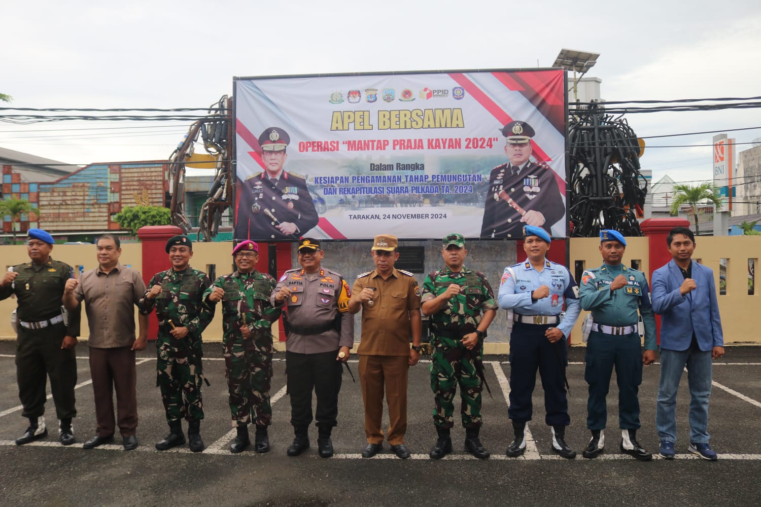 Tarakan – Komandan Kodim 0907/Trk Letkol Kav Jhon B.C.Simarmata,M.Ha.menghadiri Apel Gelar Kesiapan Pengamanan Tahap Pemungutan Suara dan Rekap Suara Pilkada 2024 Serta Patroli Gabungan 2024 di Lapangan Apel Polres JL.Yos Sudarso Kota Tarakan,Minggu(24/11/2024).