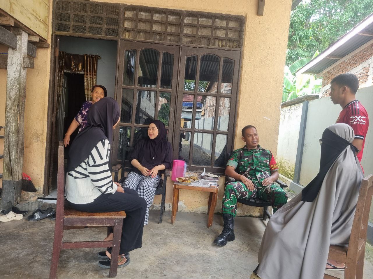 Dalam kegiatannya, Babinsa berbincang santai menjalin keakraban dan saling berbagi informasi terkait situasi di wilayah Kelurahan binaannya.