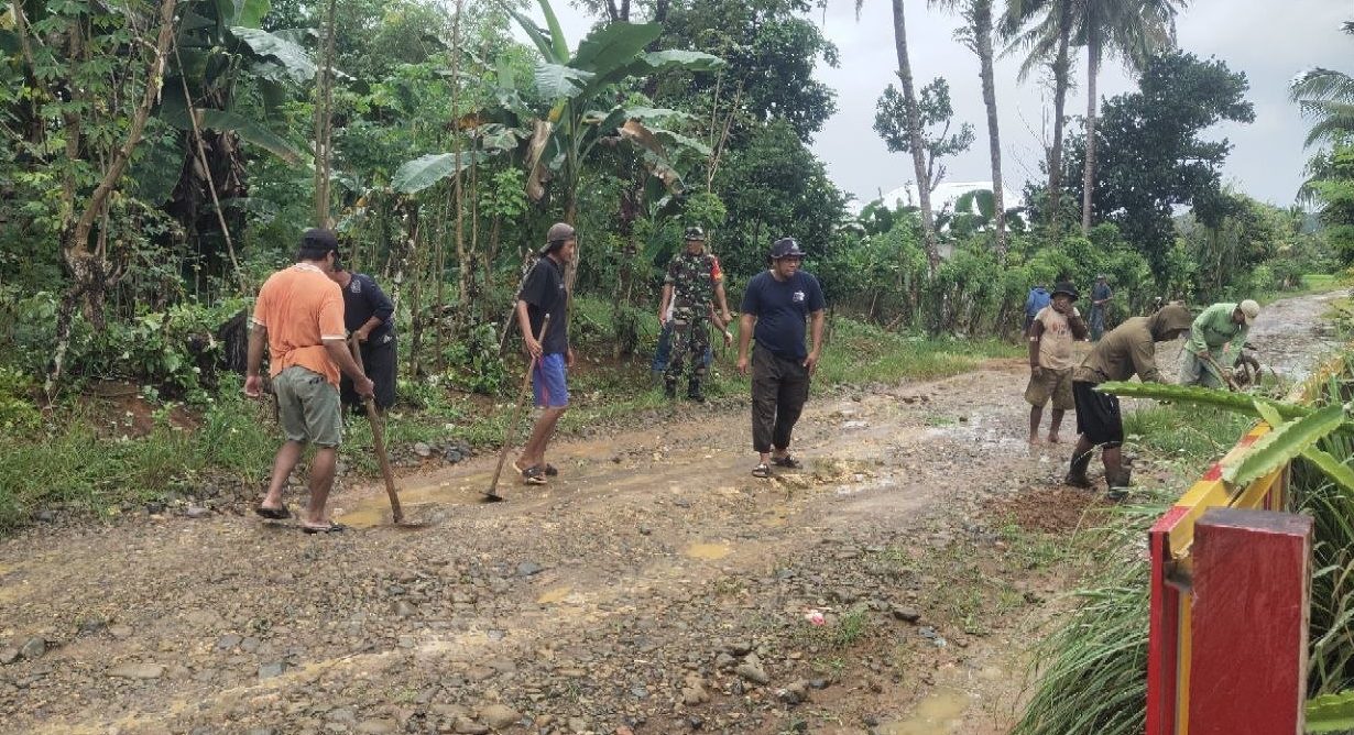 Dalam pelaksanaannya, Babinsa bersama warga bahu-membahu membersihkan rumput liar, sampah, serta semak belukar yang tumbuh di sepanjang jalan desa.