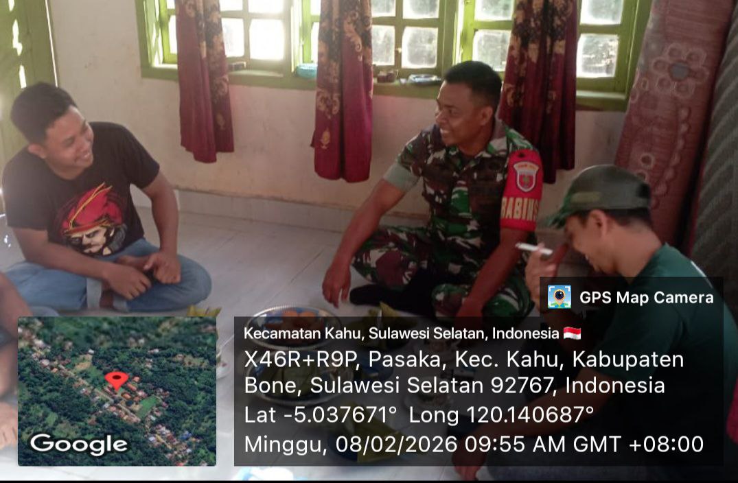 BONE – Serda Awaluddin Babinsa Koramil 1407-19/Kahu melaksanakan Komunikasi Sosial (Komsos) dengan warga Desa Pasaka, Kec. Kahu, Kab. Bone. Minggu Siang (08/02/26).