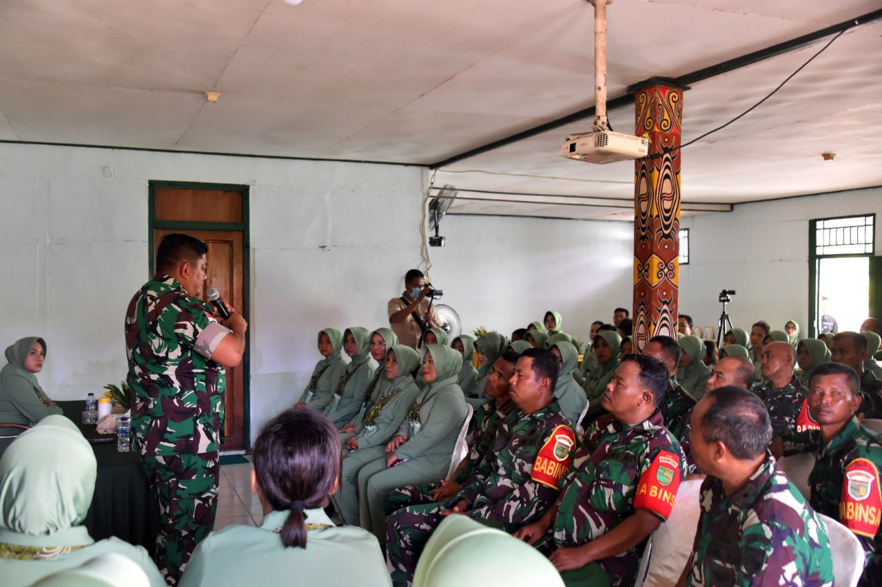 Ikut hadir pada pengarahan tersebut Danramil 1707-02/Merauke Mayor Inf La Haruni dan Ketua Persit KCK Cabang XVIII Kodim 1707/Merauke Ny. Farah Johny Nofriady beserta para pengurus.