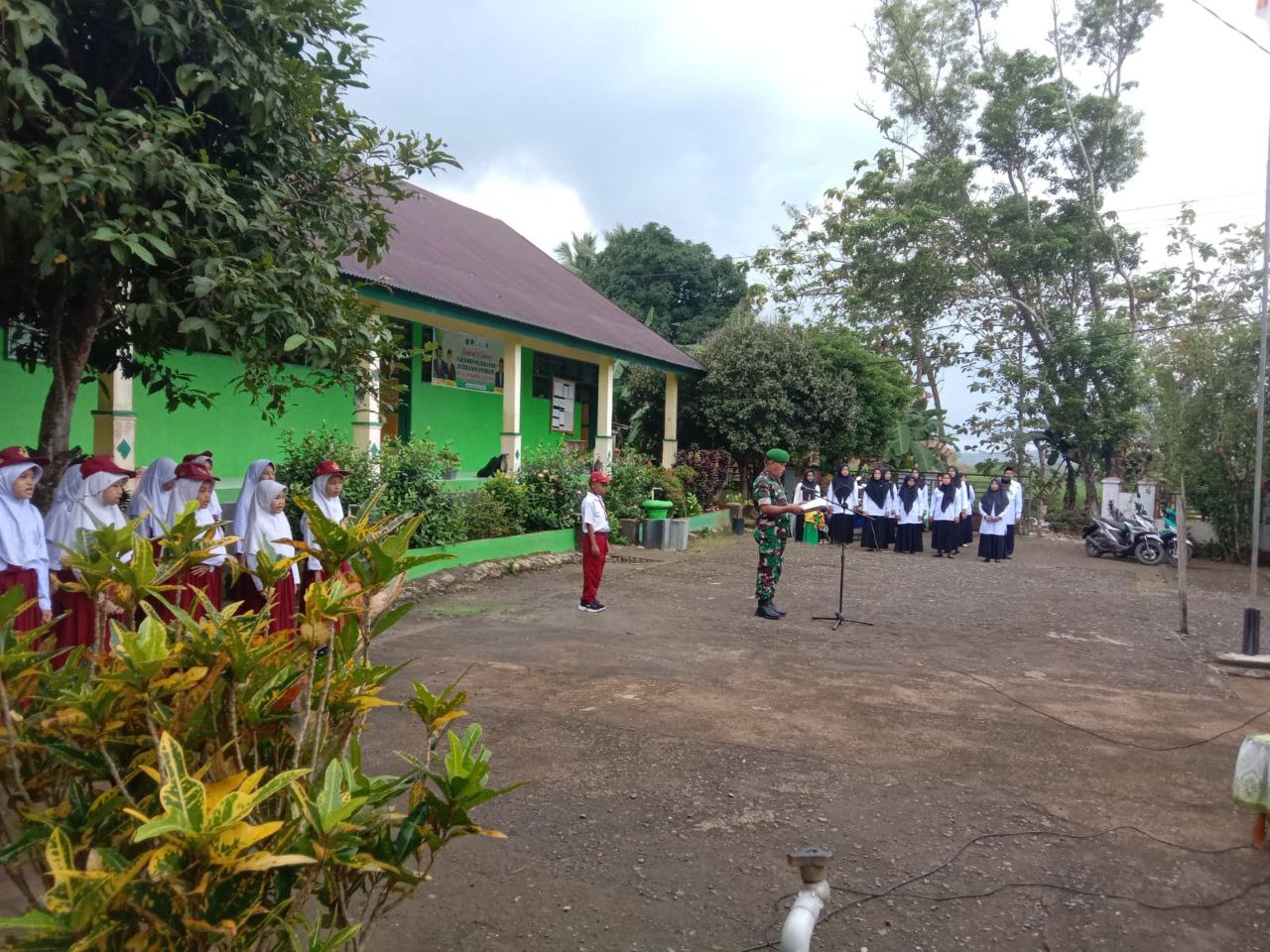“Kalian adalah generasi penerus bangsa. Oleh karena itu, sejak sekarang harus dibiasakan disiplin, jujur, dan bertanggung jawab,” ujar Serka Husen di hadapan peserta upacara.