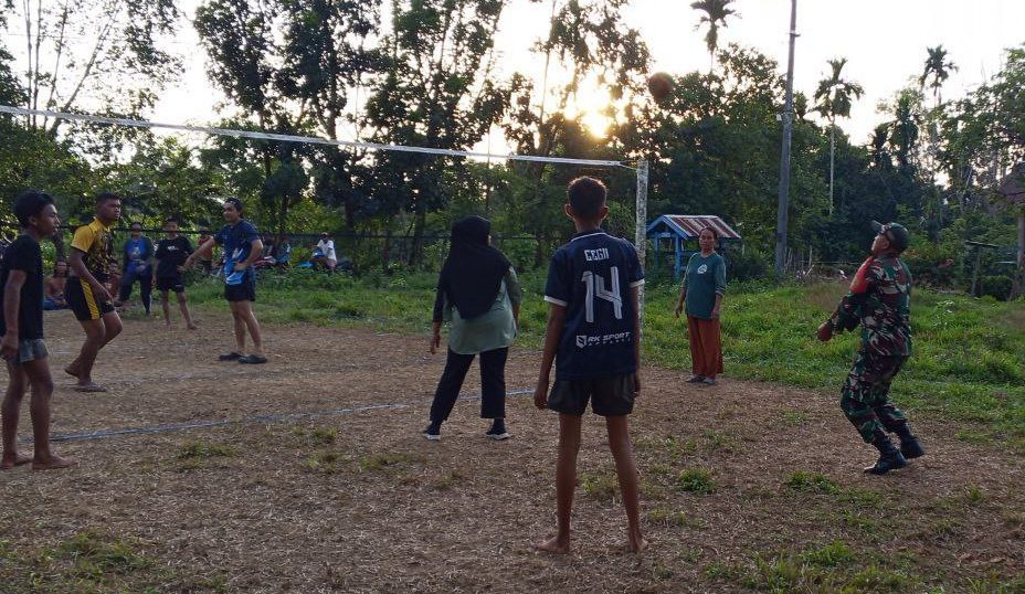 BONE – Koptu Tahang Babinsa Koramil 15/Mare Kodim 1407/Bone melaksanakan pembinaan olahraga voli bersama warga Desa Pattiro, Kec. Mare, Kab. Bone. Jumat (06/02/26).