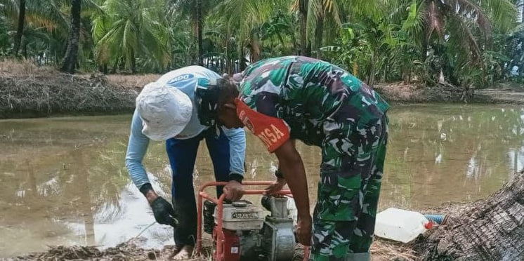 Selama kegiatan, Serda Ismail aktif membantu proses pengaliran air dan memberikan bimbingan teknis kepada warga dalam penggunaan mesin agar distribusi air lebih efektif.