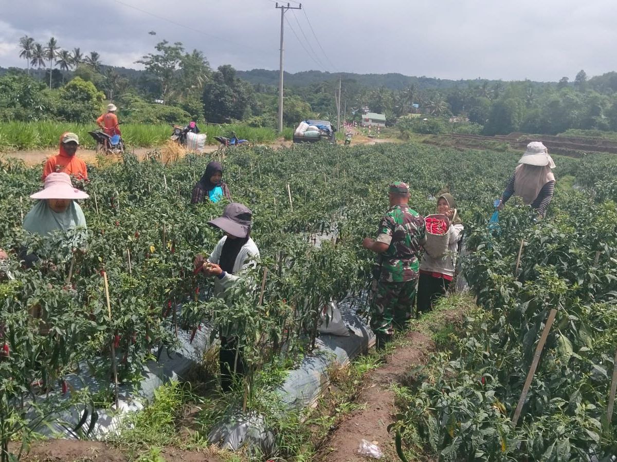 BONE – Babinsa Koramil 1407-20/Bontocani Serma Laode Fajeri melaksanakan pendampingan panen cabai bersama petani di Desa Pattuku, Kec. Bontocani, Kab. Bone. Minggu (08/02/26).