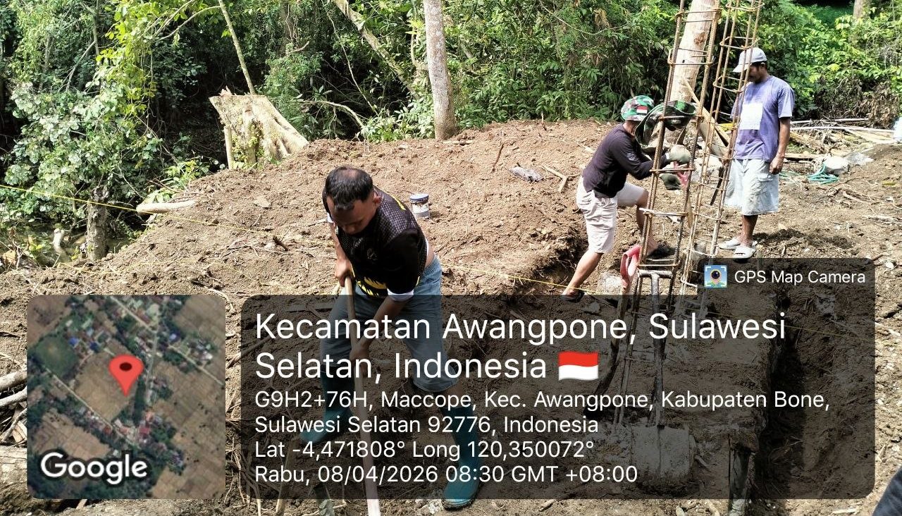 Bone – Personel Koramil 1407-06/Awangpone melaksanakan gotong royong bersama masyarakat dalam penggalian untuk pembuatan cor tiang Jembatan Garuda. Kegiatan tersebut berlangsung di Lingk. IV Barang, Kel. Macope, Kec. Awangpone, Kab. Bone. Rabu siang (08/04/26).