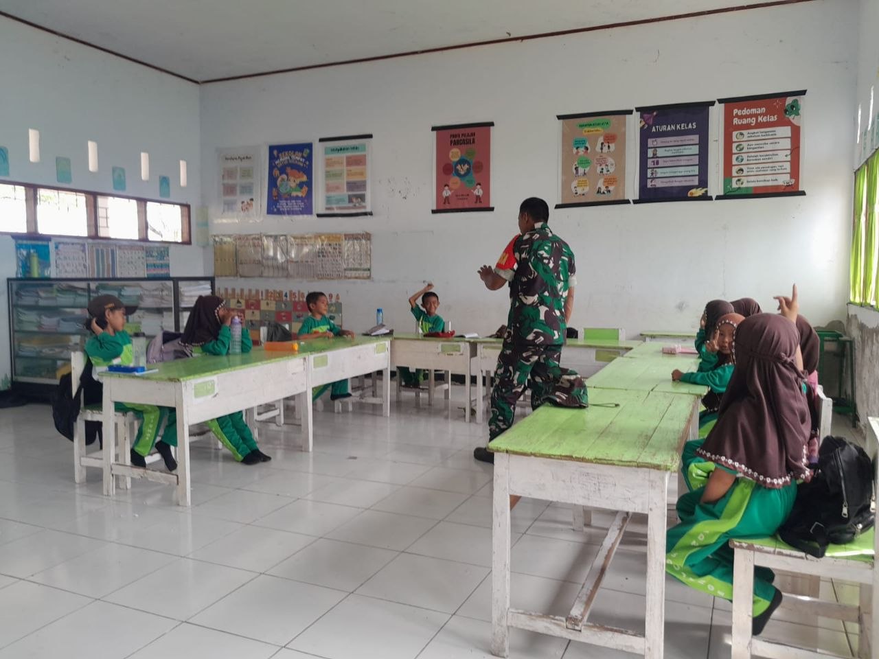 Dalam pelaksanaannya, Sertu Sukardi memberikan materi tentang pentingnya menjaga persatuan dan kesatuan, disiplin, serta peduli terhadap lingkungan sekitar.