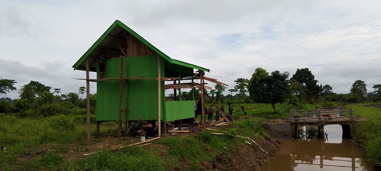 DanSatgas TMMD Ke- 121 Wilayah Perbatasan Kodim 0910/Malinau Letkol Inf Alisun S. Sos.,M.Han mengatakan, bahwa pengerjaan rumah singgah berukuran 4×6 meter memasuki Pekan ke 4 atau H+ 23 telah mencapai 95 Persen, Mungkin 1 atau 2 hari kedepan rumah singgah ini selesai 100 persen.