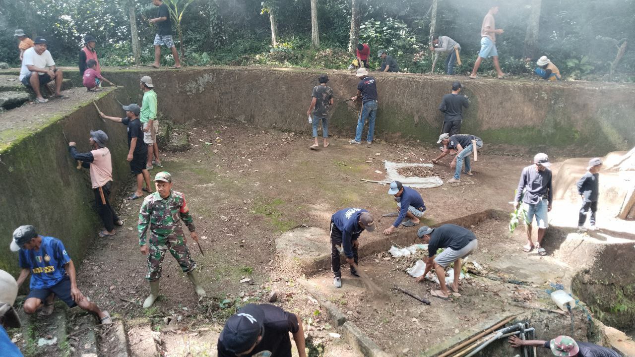 Babinsa bersama warga membersihkan sumur tua dari sampah dan kotoran serta memastikan kondisi lingkungan sekitarnya tetap aman dan higienis.