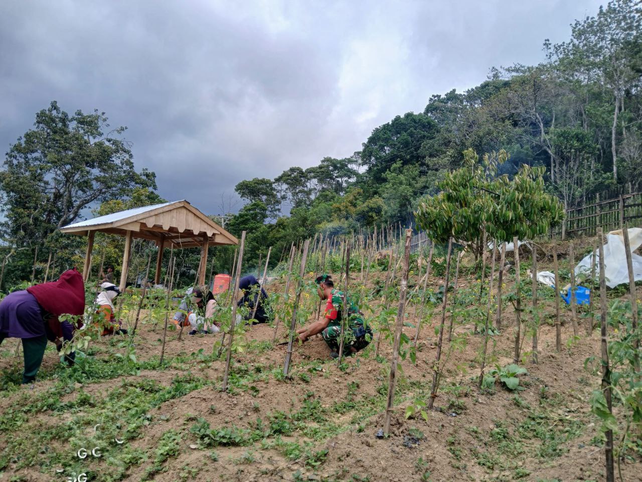 Sertu A. Riady ikut serta dalam merawat dan mengelola kebun sehat, yang diharapkan dapat memberikan hasil yang bermanfaat bagi keluarga dan lingkungan sekitar.
