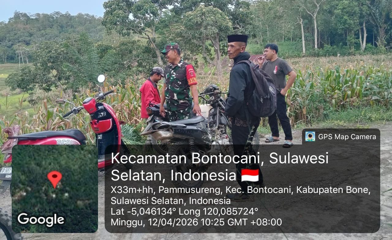Bone – Babinsa Koramil 1407-20/Bontocani Serka Andi Bahri secara aktif melaksanakan komunikasi sosial (Komsos) bersama warga di Dusun Suka, Desa Pammusureng, Kec. Bontocani, Kabu. Bone. Minggu siang (12/04/26).