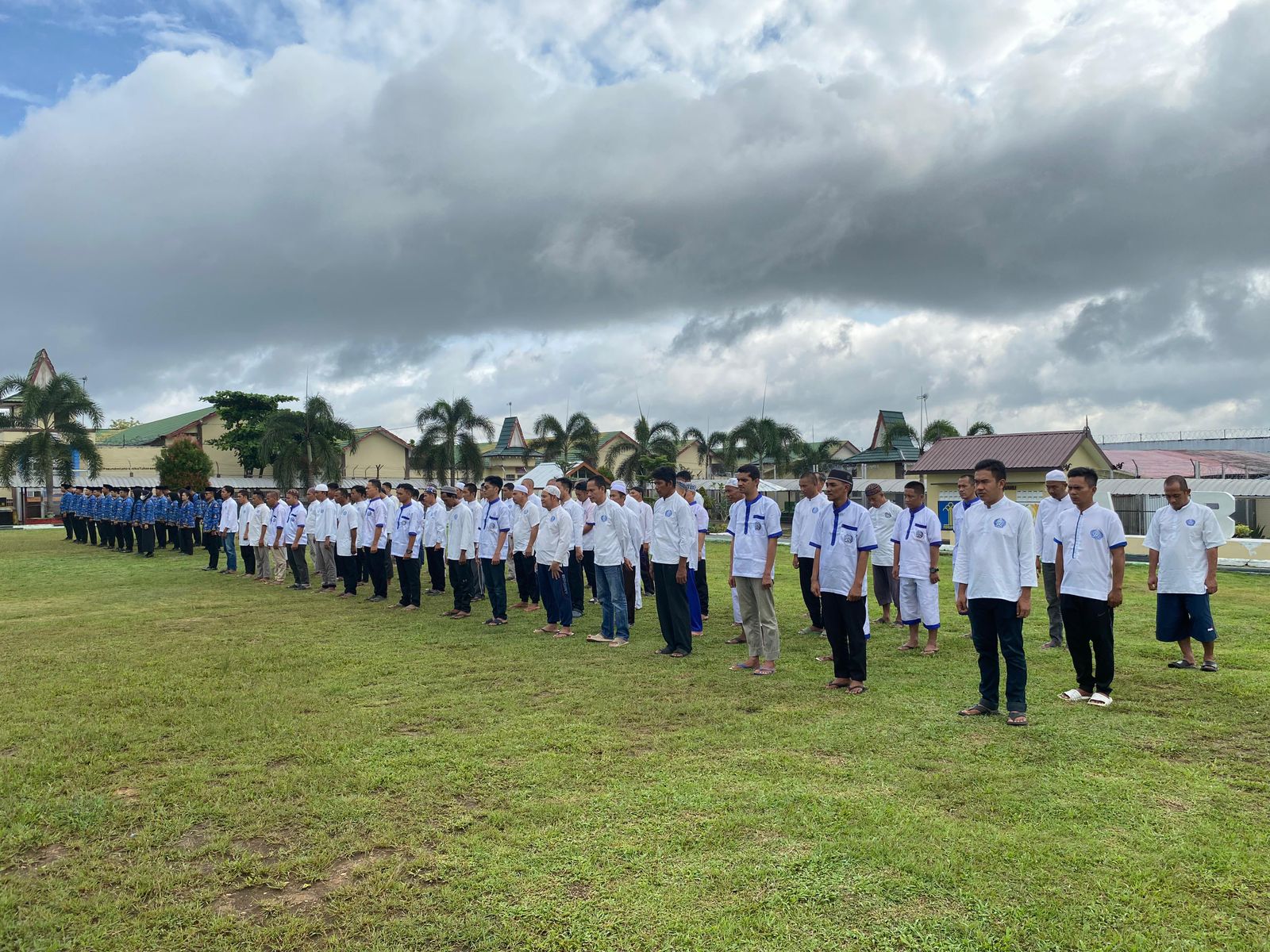 Banjarbaru, INFO_PAS – Lembaga Pemasyarakatan (Lapas) Kelas IIB Banjarbaru gelar Upacara Peringatan Hari Bela Negara ke-76 Tahun 2024 yang diikuti para pegawai dan Warga Binaan, Kamis (19/12) di Lapangan Alun-Alun Lapas Banjarbaru. Upacara bertema “Gelorakan Bela Negara untuk Indonesia Maju” ini dipimpin oleh Kepala Sub Bagian Tata Usaha, Tamberin, sebagai Inspektur Upacara.