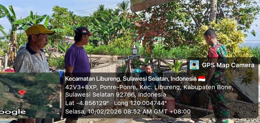 BONE – Serda Erwin Babinsa Koramil 1407-14/Libureng melaksanakan Komunikasi Sosial (Komsos) dengan warga Desa Ponre-Ponre, Kec. Libureng, Kab. Bone. Selasa Siang (10/02/26).
