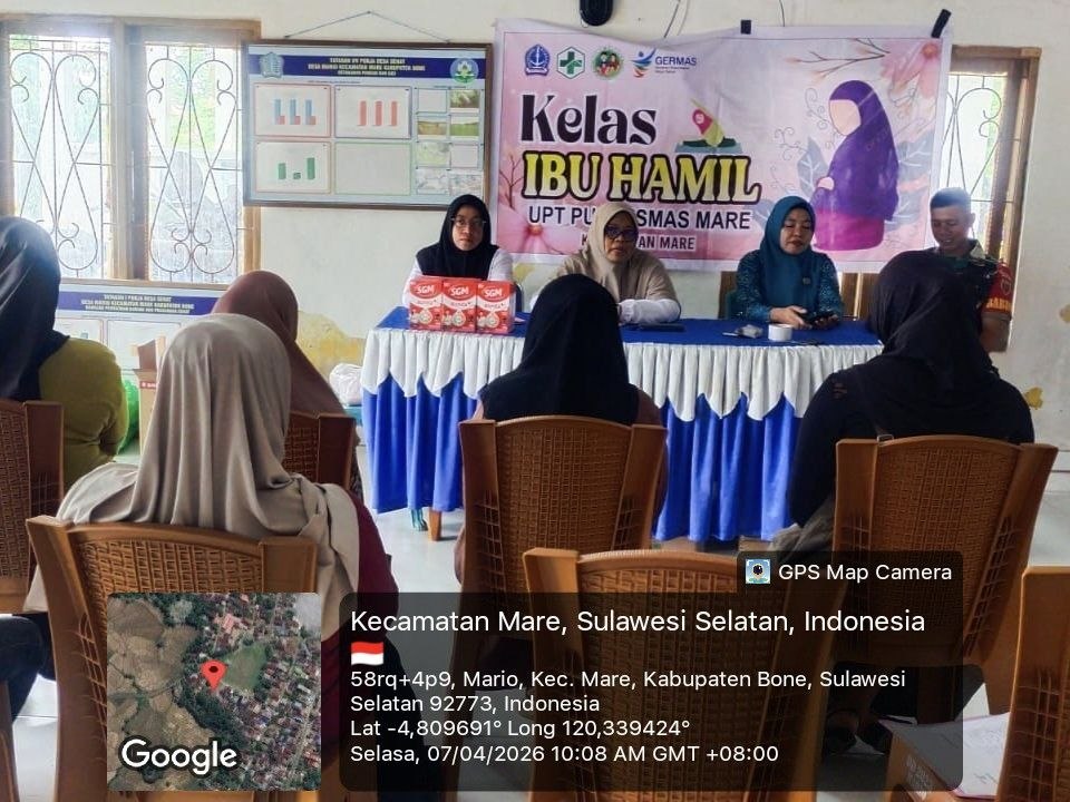 Bone – Babinsa Koramil 1407-15/Mare Serka Ginanjar melaksanakan pendampingan dan monitoring kegiatan pertemuan kelas ibu hamil yang berlangsung di Kantor Desa Mario, Kecamatan Mare, Kabupaten Bone. Selasa siang (07/04/26).
